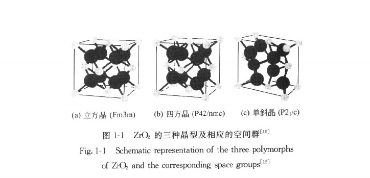 三種晶型的氧化鋯及含不同穩定劑的氧化鋯的晶格常數見表1-1