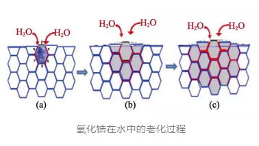 ①H2O分子化學吸附到ZrO2材料表面;
