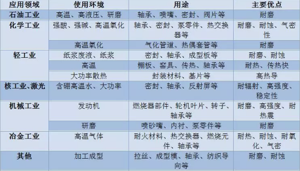 21世紀,隨著科學(xué)技術(shù)的發(fā)展,信息、能源、材料、生物工程已經(jīng)成為當今社會生產(chǎn)力發(fā)展的四大支柱,碳化硅由于化學(xué)性能穩(wěn)定、導(dǎo)熱系數(shù)高、熱膨脹系數(shù)小、密度小、耐磨性能好、硬度大、機械強度高、耐化學(xué)腐蝕等特點,在材料領(lǐng)域發(fā)展迅速。碳化硅陶瓷因具有密度低、熱膨脹系數(shù)小、硬度高、耐高溫,彈性模量大、耐腐蝕等特點,普遍用于陶瓷球軸承、閥門、半導(dǎo)體材料、陀螺、測量儀、航空航天等領(lǐng)域。